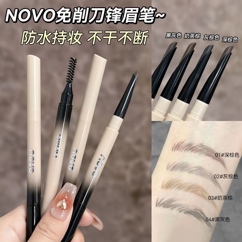 NOVO ブレード カーブ アイブロウ ペンシルは長持ちし、防水性と耐汗性があり、色あせせず、色褪せせず、初心者でも眉を描くのに適しています。