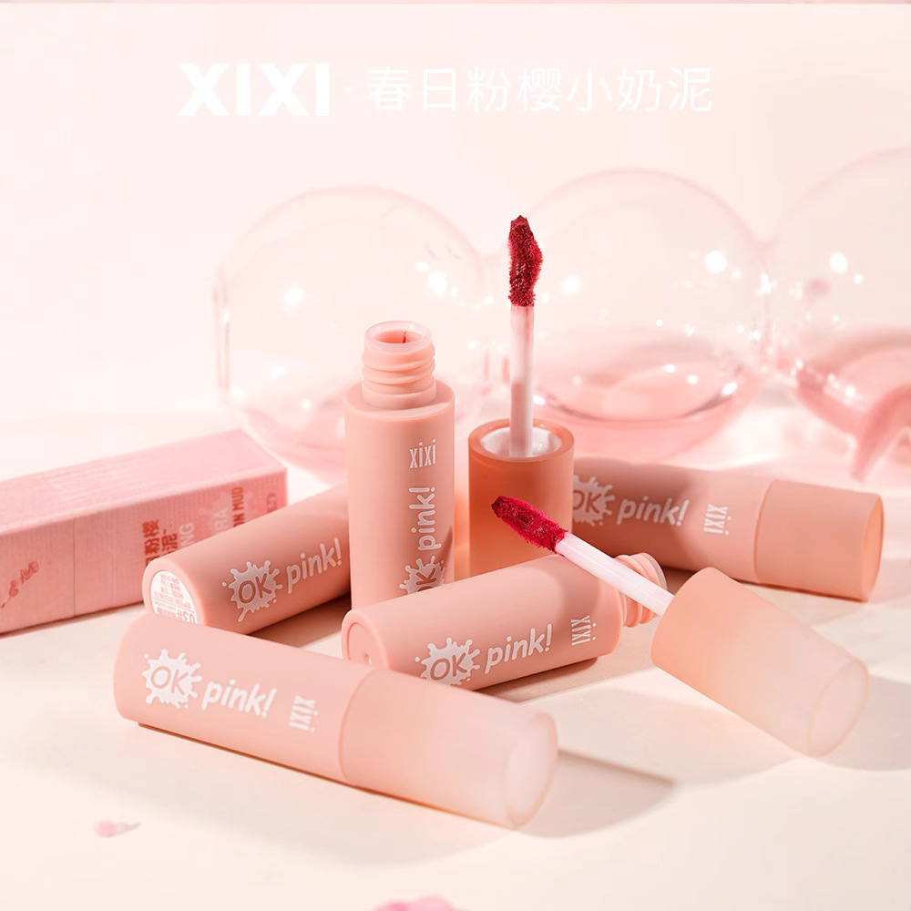 XIXID-536 春のピンク桜 小さなミルクマッド 美白 長持ち ノンスティックカップ 落ちないリップマッド リップグレーズ 女子学生用