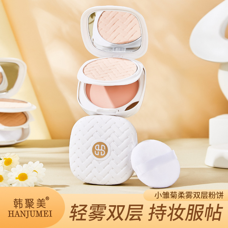 Han Jumei Little Daisy ソフトミスト ダブルレイヤー パウダー ツーインワン コンシーラー 軽量 防水 長持ち 落ちにくい デュアルユース 女性用