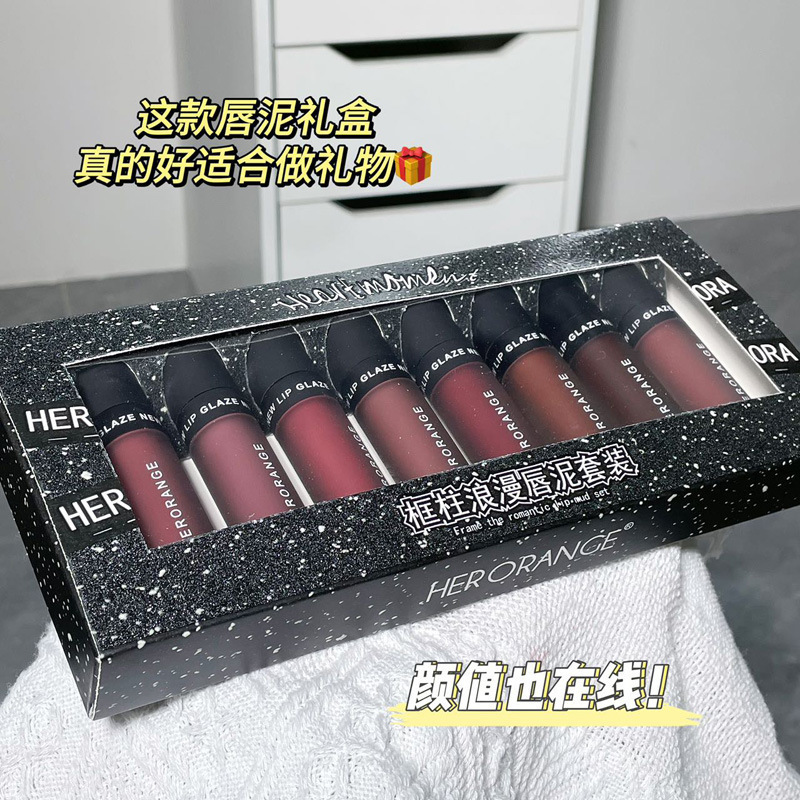HERORANGE ~ 枠柱ロマンチックな唇泥セット8本セット素顔に白い唇釉薬マット霧面ベルベット口紅