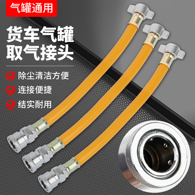 トラックのガスボンベのガスボンベのバルブを取って高圧の空気のツールに接続します。