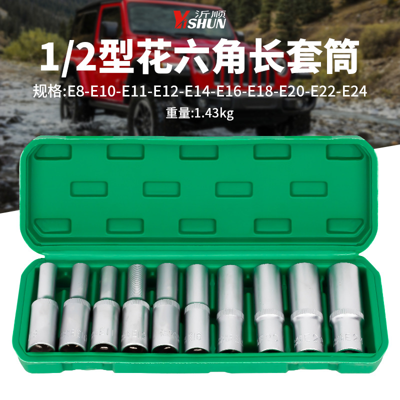 エクストラロングE型ソケット、六角星型ソケット、1/2エクストラロングソケット、六角プラムキーセット、自動車修理専用工具
