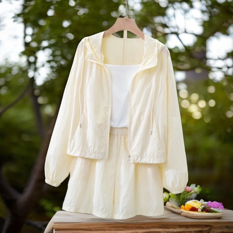 アメリカン速乾日焼け止めスポーツスーツ女性用 2025 夏軽くてゆったり小柄な学生ショーツ 2 点セットトレンディ