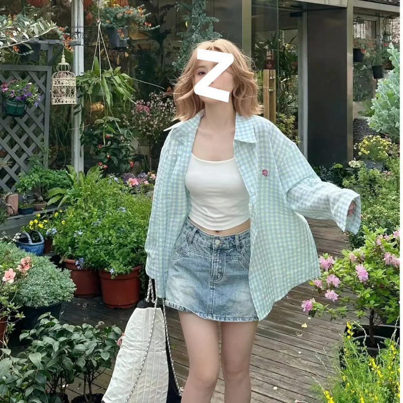 韓国偽ツーピースピンクチェック柄シャツ長袖ジャケットスプライシング春ルーズ新デザインカジュアルトップ