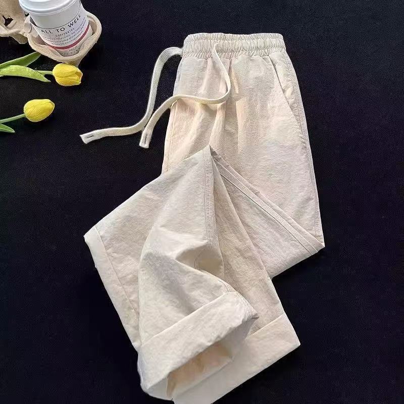 カジュアルパンツ、アイスシルクストレートレッグ、薄手、トレンディなサマーパンツ、ルーズパンツ、速乾性、多用途カジュアルスポーツパンツ