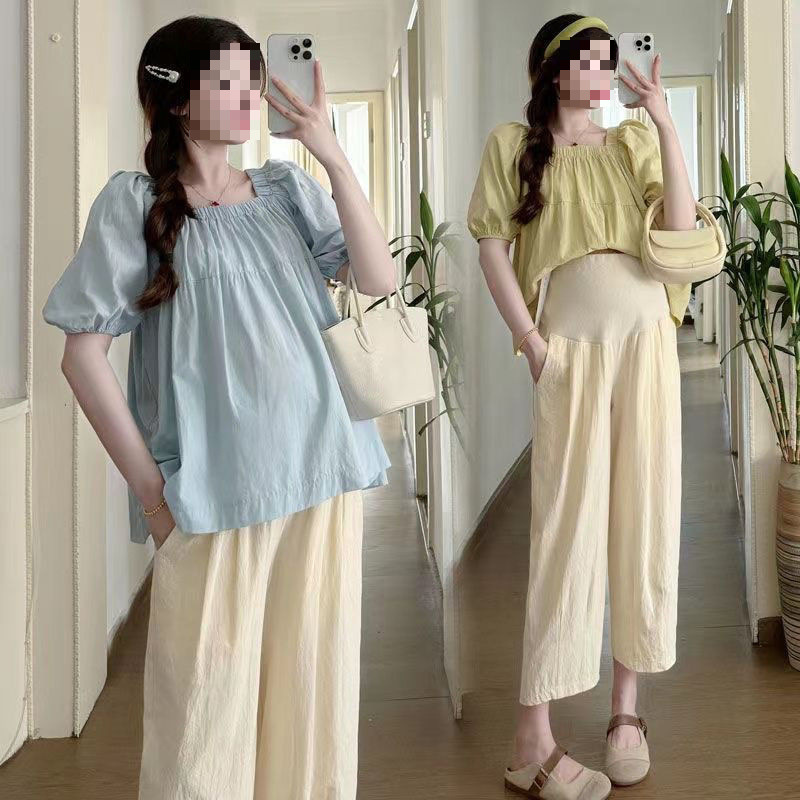 妊娠中の女性のためのお腹カバー、ゆったりとした夏スタイルのベビードールシャツ、夏のスーツ、パンツ、お出かけ用のツーピーススーツ