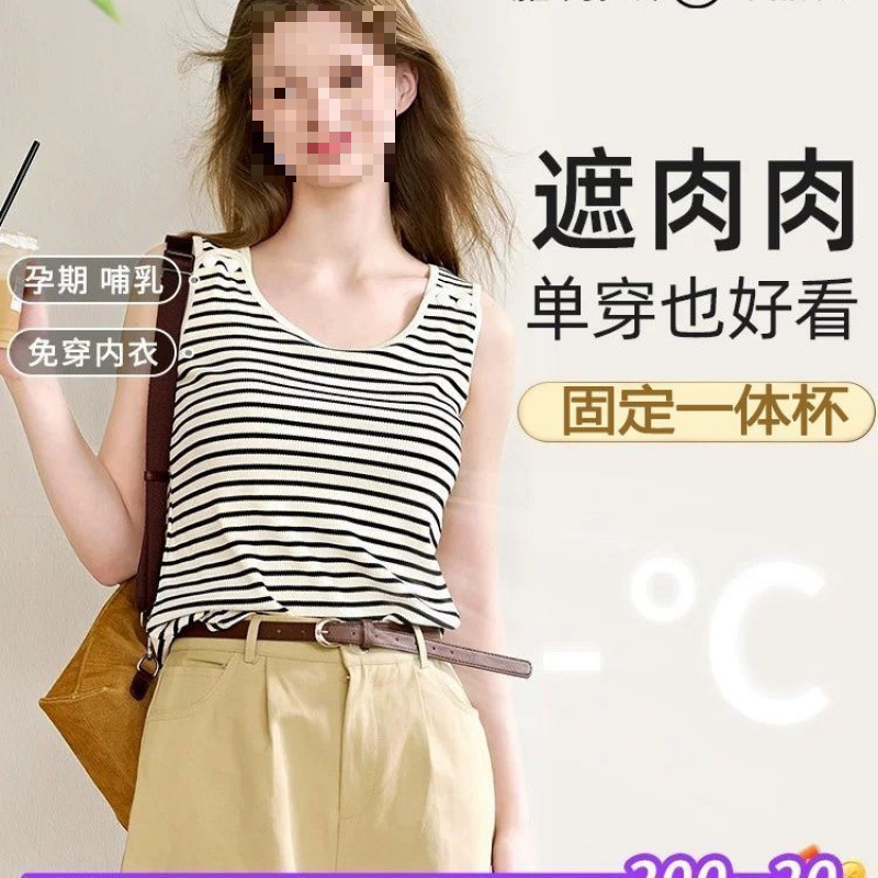 胸パッド付き授乳ベスト、オールインワン、妊娠中や産後も着用可能、授乳トップス、ストライプシャツ、夏用薄手