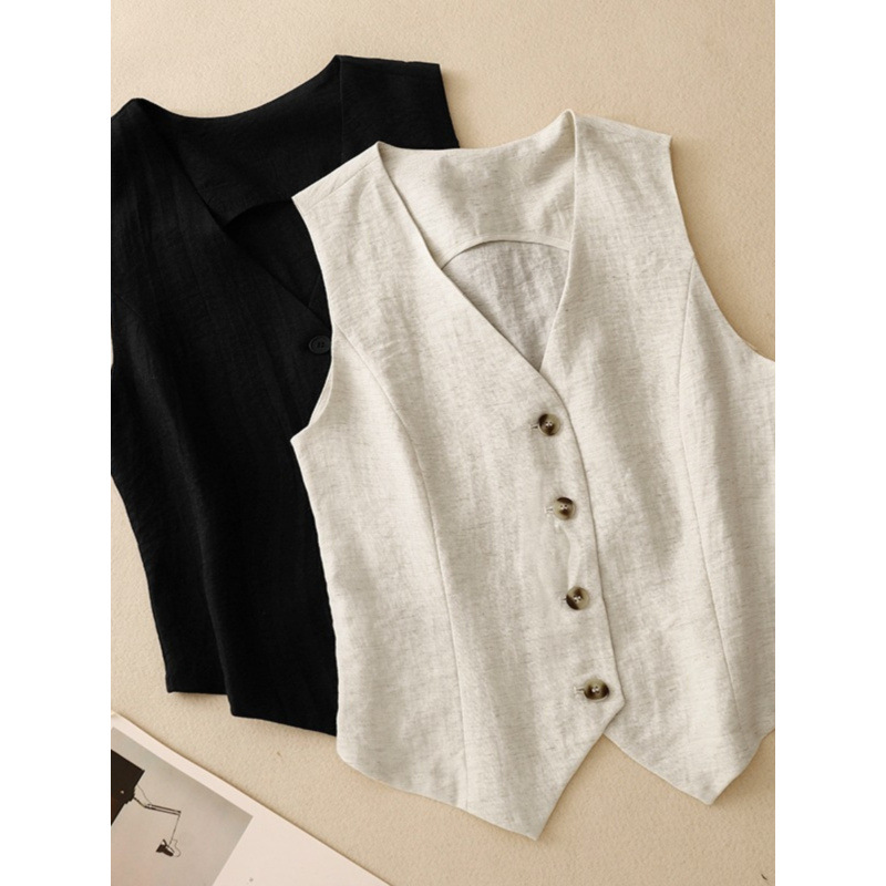 リネンスーツベスト女性の夏フレンチレトロ薄型アウターショートノースリーブベストジャケットトップ