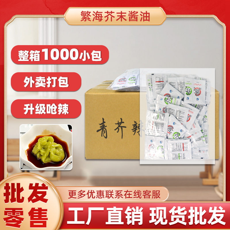 繁海寿司わさび醤油ミニ調味料バッグ刺身青マスタード辛い3g醤油6g 1000小包セット