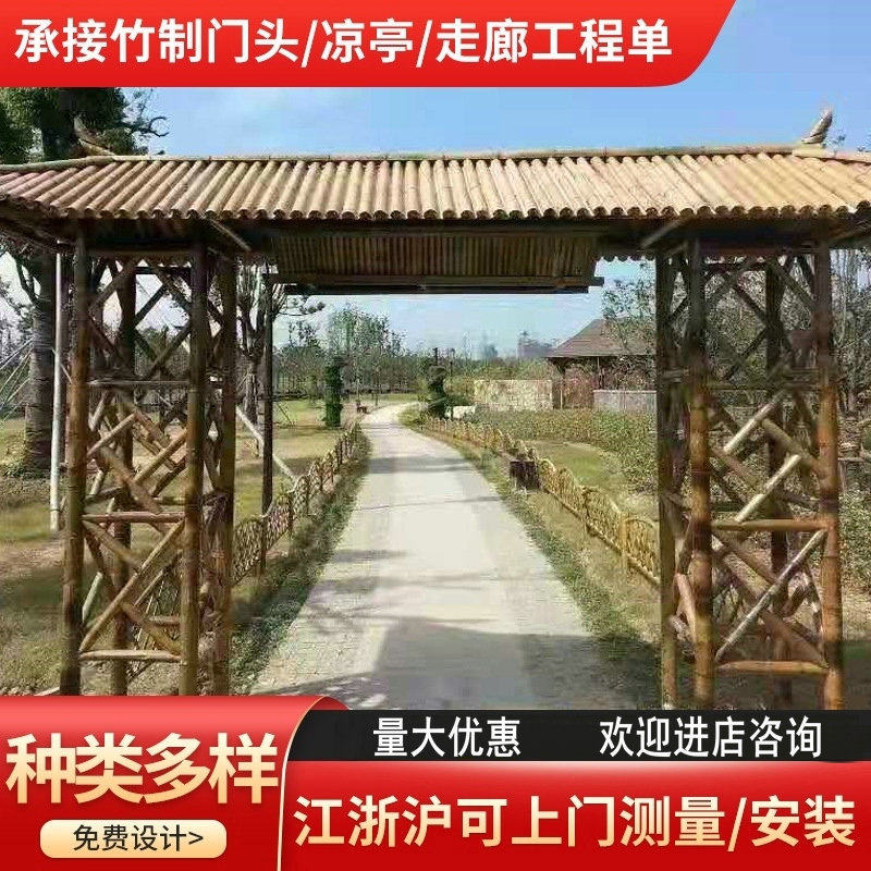 竹製品家凉亭牌楼牌坊竹建築田舎竹建築竹廊下花園竹木橋