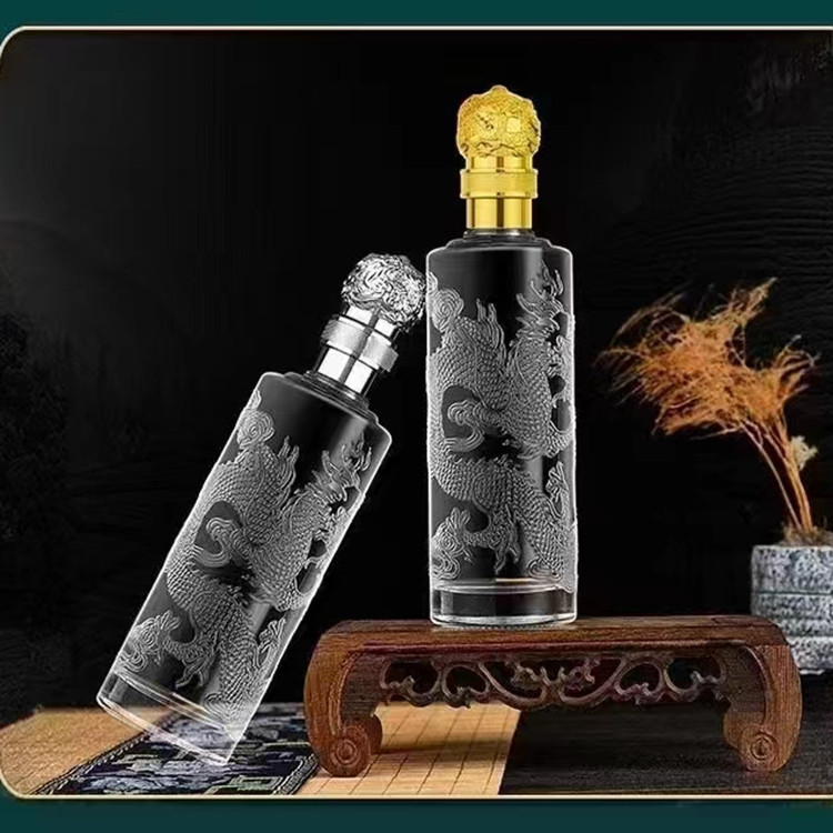 1斤は密封して厚い酒の瓶の浮き彫りの竜工の高い顔の値の白い酒の瓶の空の瓶を詰めてラベルのセットのギフトボックスの酒の瓶を貼ります。