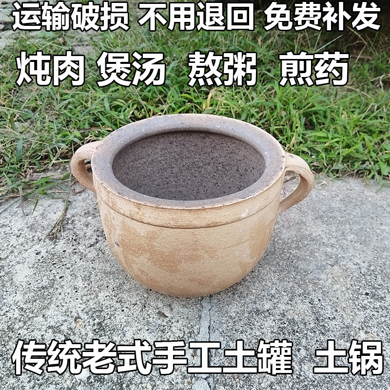 伝統的な古い手作りの土鍋の土鍋のガスの火のスープは肉の土鍋の瓦の缶を煮込みます。