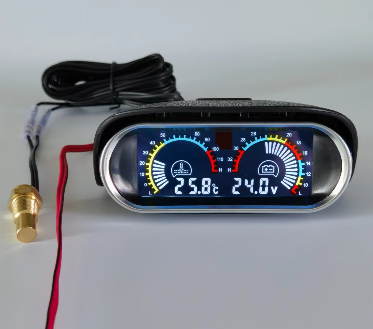デジタル表示水温電圧計農業車両自動車トラック掘削機修正水温計水平液晶組み合わせ 12V24V