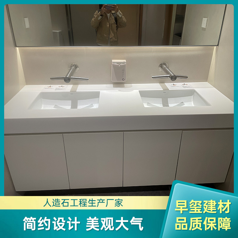 エンジニアリング人造石デュポン洗面台、ひび割れ防止、高耐圧カウンタートップ、ショッピングモールの地下鉄駅のダブル一体型洗面器の取り付け