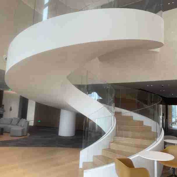 特殊形状スプライシングアクリル人造石回転階段手すり滑り止めと防汚白アートモデリング壁処理