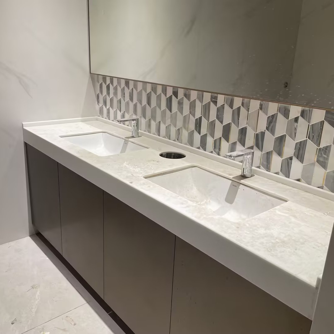 埋め込み型スプライシングハイ&ローダブル洗面台ホテルショッピングモール公共ダブル一体型洗面台コレーン人造石