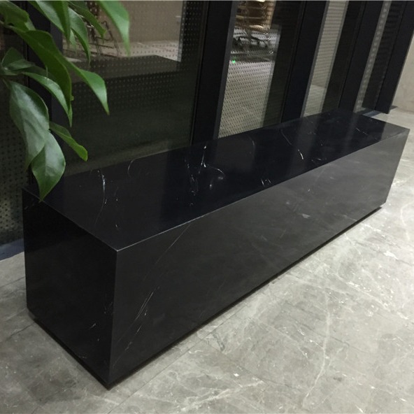深セン人工崗石メーカーは洋服店のレジカウンターの黒い人造石の長い形のお茶の水台の卸売りを供給します。