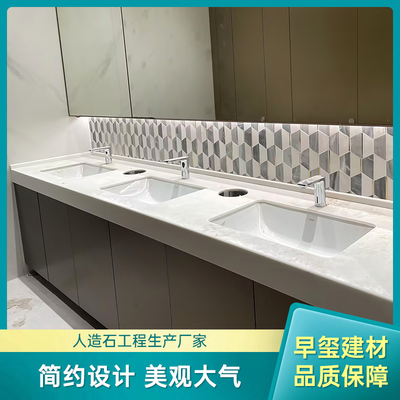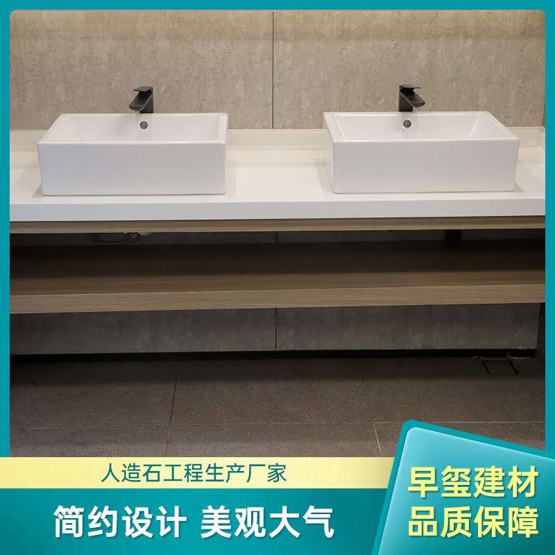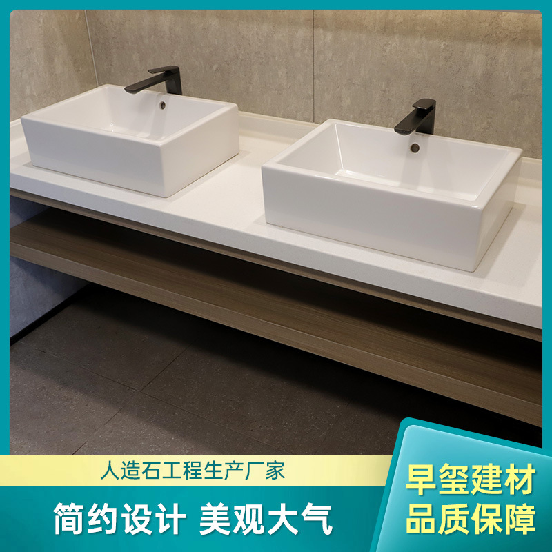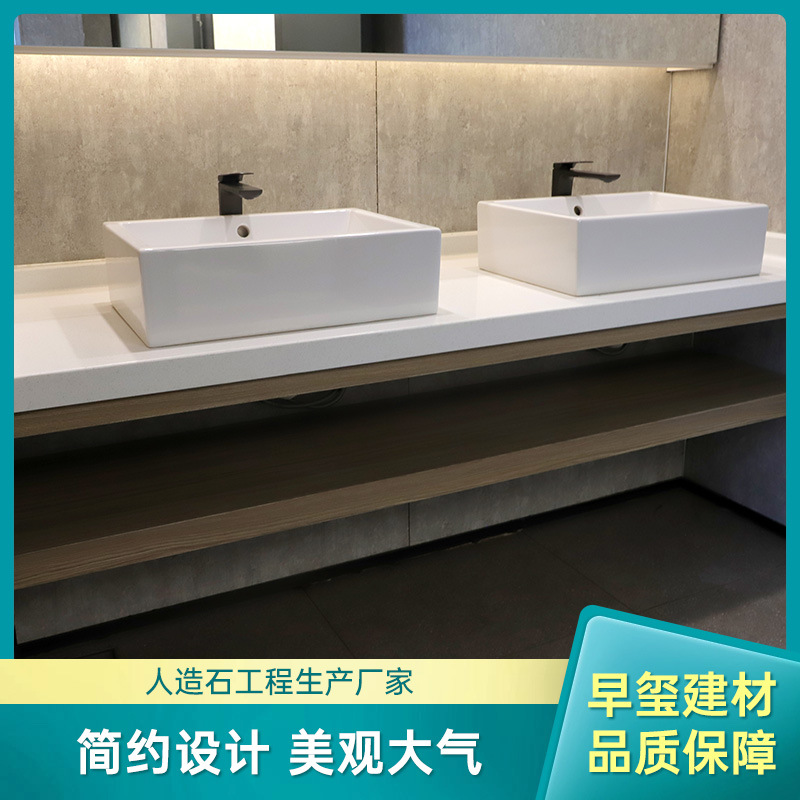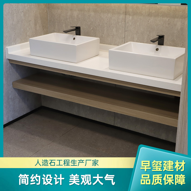 人工崗石細粒白色シングル洗面台ホテルデパートの公共壁を厚くして、二人一体型の盆を厚くする