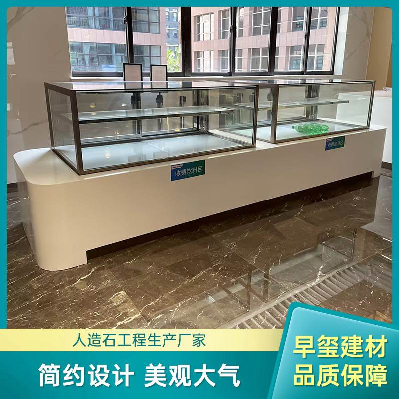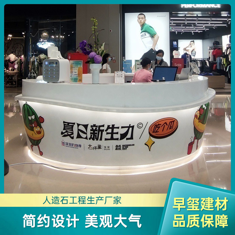 大型デパート角形サービスデスク純アクリル熱曲げアーチ形相談台白色人造石作業レジ