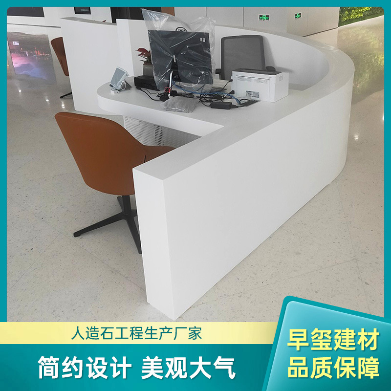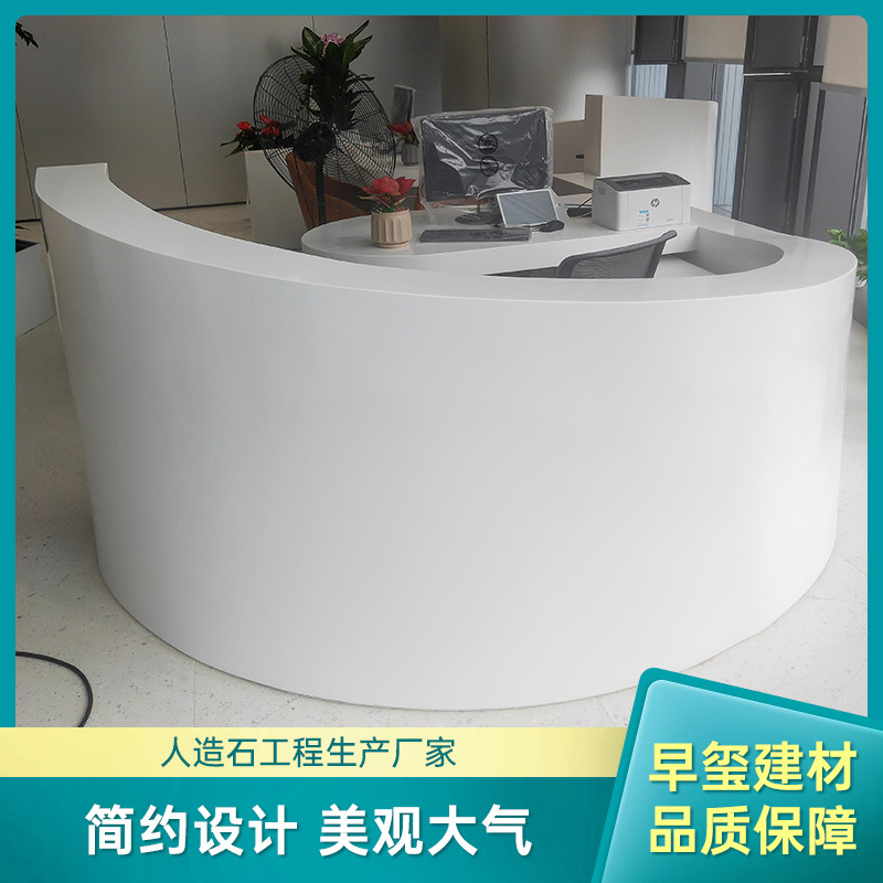 広東宇西可麗耐人造石事務台オフィスフロント純白円形相談台加工
