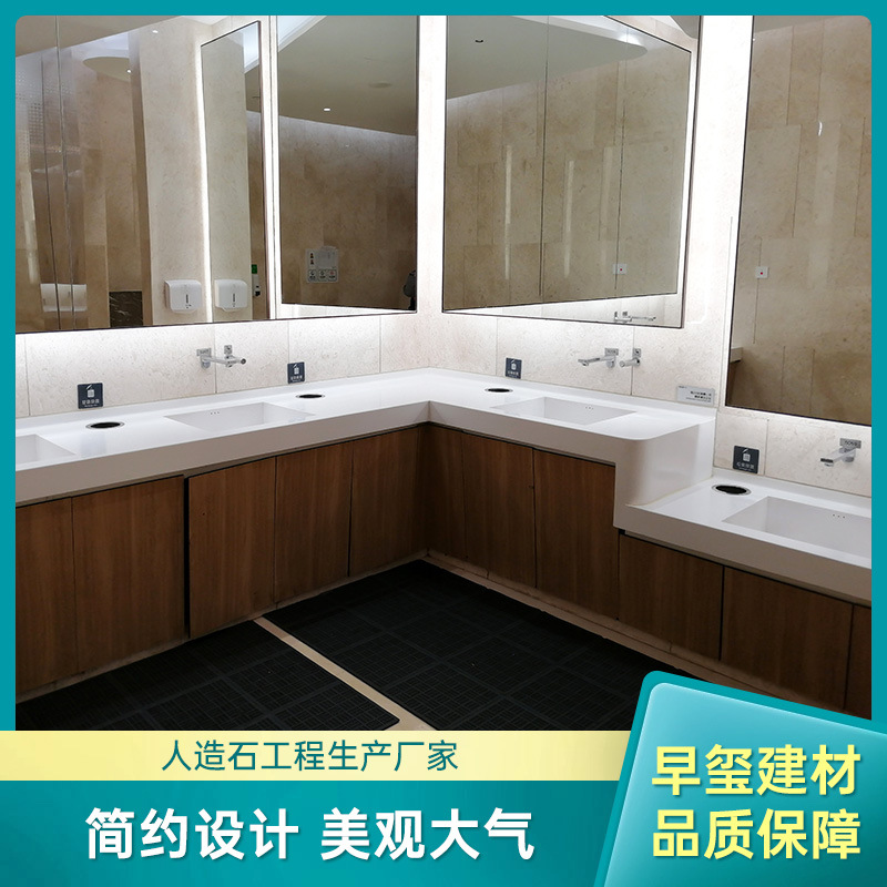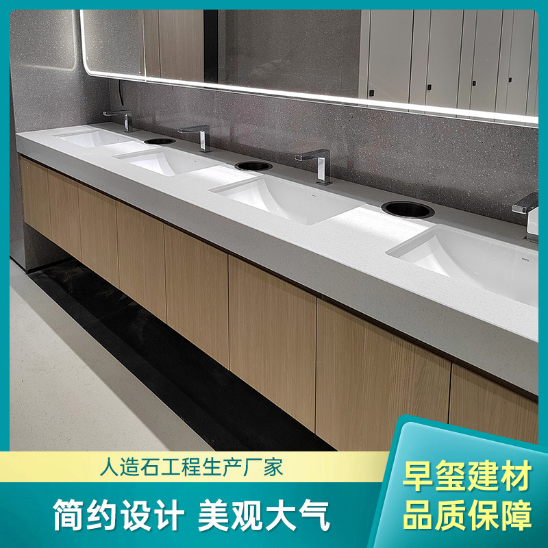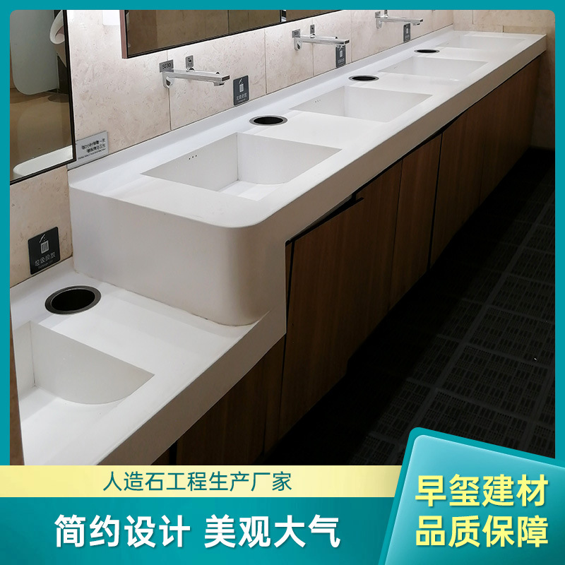 宇西人造石純白高低一体洗面台デパート公共トイレシングル洗面器スロープ盆