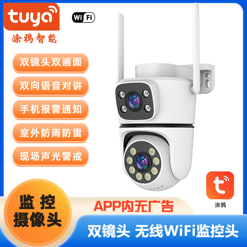 落書きスマートtuya無線カード雲台家庭用首振り機4MP高精細ダブル光監視カメラ2.4G