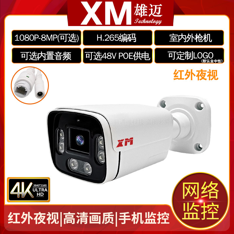 雄マイネットワーク高精細有線フルカラー夜視家庭用携帯電話遠隔銃機連ホストpoe監視カメラ