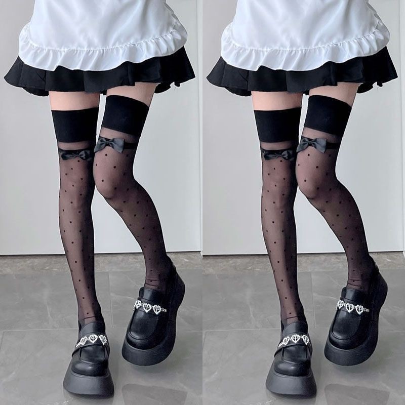 かわいい日系jk靴下女ins潮百合高颜値丸点蝶ネクタイ夏の薄いタイプの膝靴下