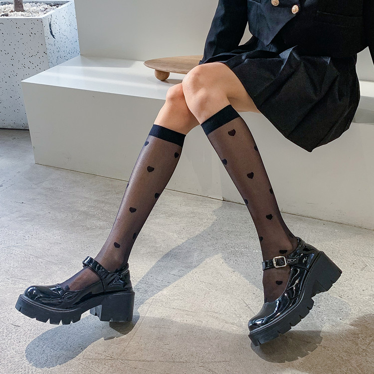 春夏綾点jk少女lolitaふくらはぎ靴下丸点中筒靴下白生成色黒ストッキング夏