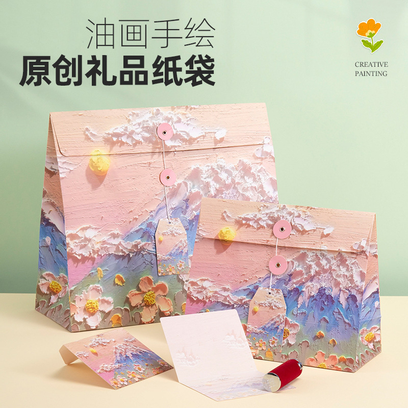 オリジナル油絵棒ギフト袋insバレンタインギフト袋大きいサイズギフト袋服包装袋収納紙袋