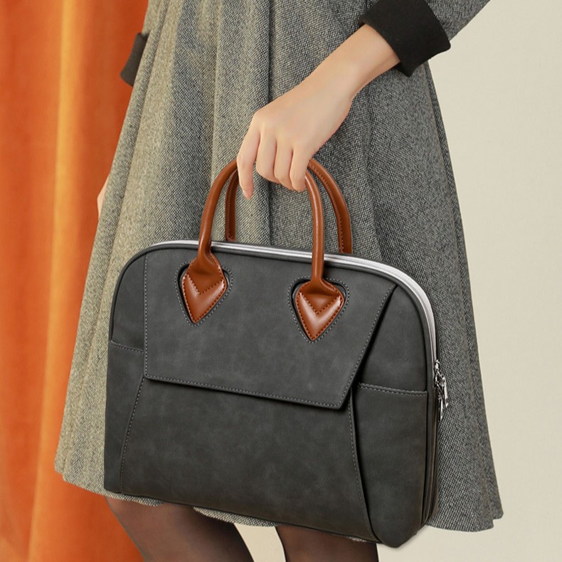 クロスボーダーコンピューターバッグ 女の子向け 高見えPUトートブリーフケース ショルダー14インチ/14インチ 防振防水ノートパソコンバッグ