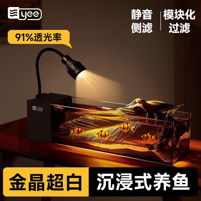 yee2025 新しいスマートデスクトップ水槽超白色ガラス小型家庭用生態造園自己循環オールインワンタンク