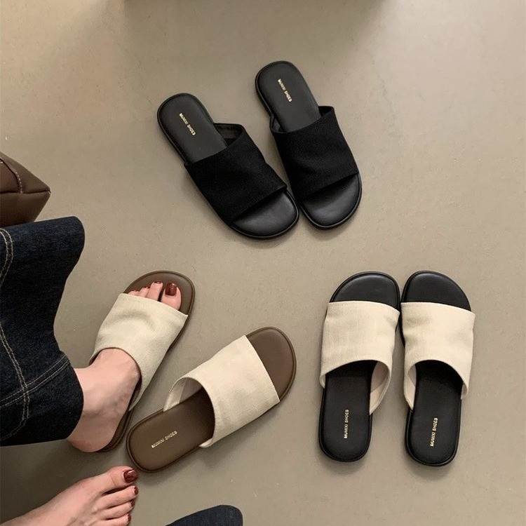 フラットレトロカジュアルスリッパ女性の夏のアウターウェア 2025 リネン生地ホリデービーチサイズ 42 サンダル
