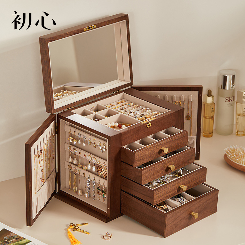 初心創意指紋パスワードロック付き四角いアクセサリーケースピアスネックレス指輪ブレスレットアクセサリー収納アクセサリーケース