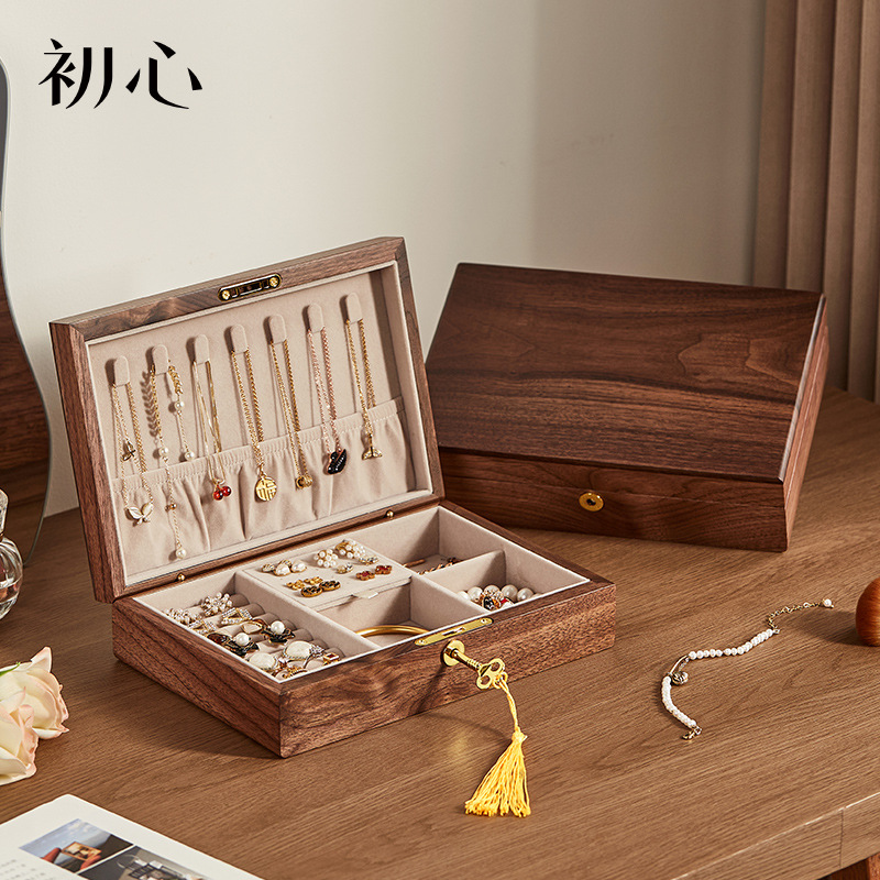 初心ヨーロッパ風木製ジュエリーアクセサリー収納ケースイヤリング指輪ネックレスアクセサリーケース大容量