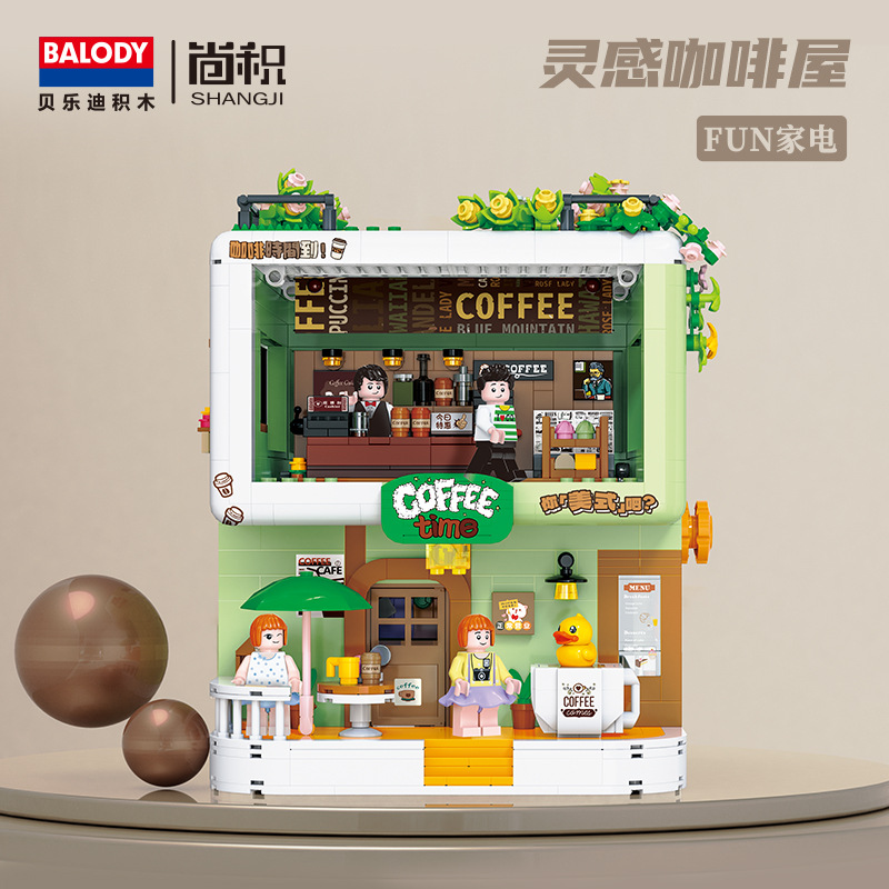 貝楽迪mini新商品インスピレーションコーヒーハウス家電小黄鴨街景盛り合わせ玩具積み木置物コーヒーハウス