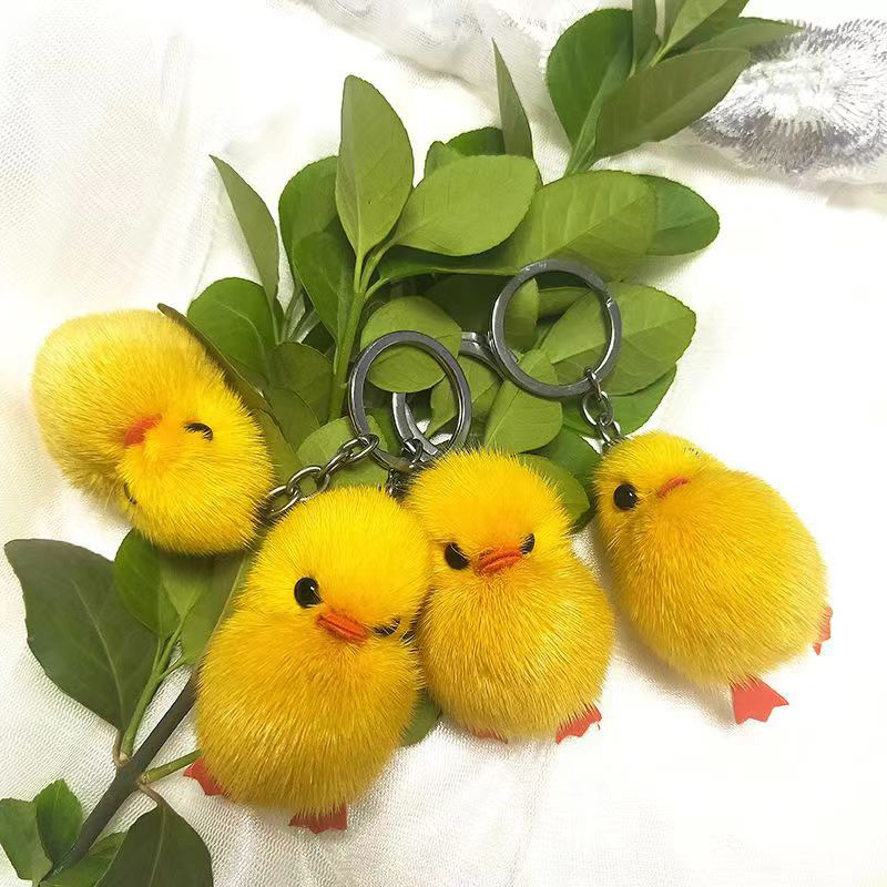 ミンクの毛のひよこの小さい黄色のアヒルの鍵はかわいいぬいぐるみの車の鍵を掛けて携帯電話のペンダントを掛けます。
