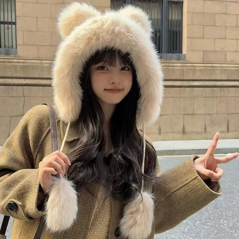 熊の帽子秋冬の綿の帽子の保温帽は顔が小さくて、耳の少女の心のぬいぐるみの熊の帽子を保護します。