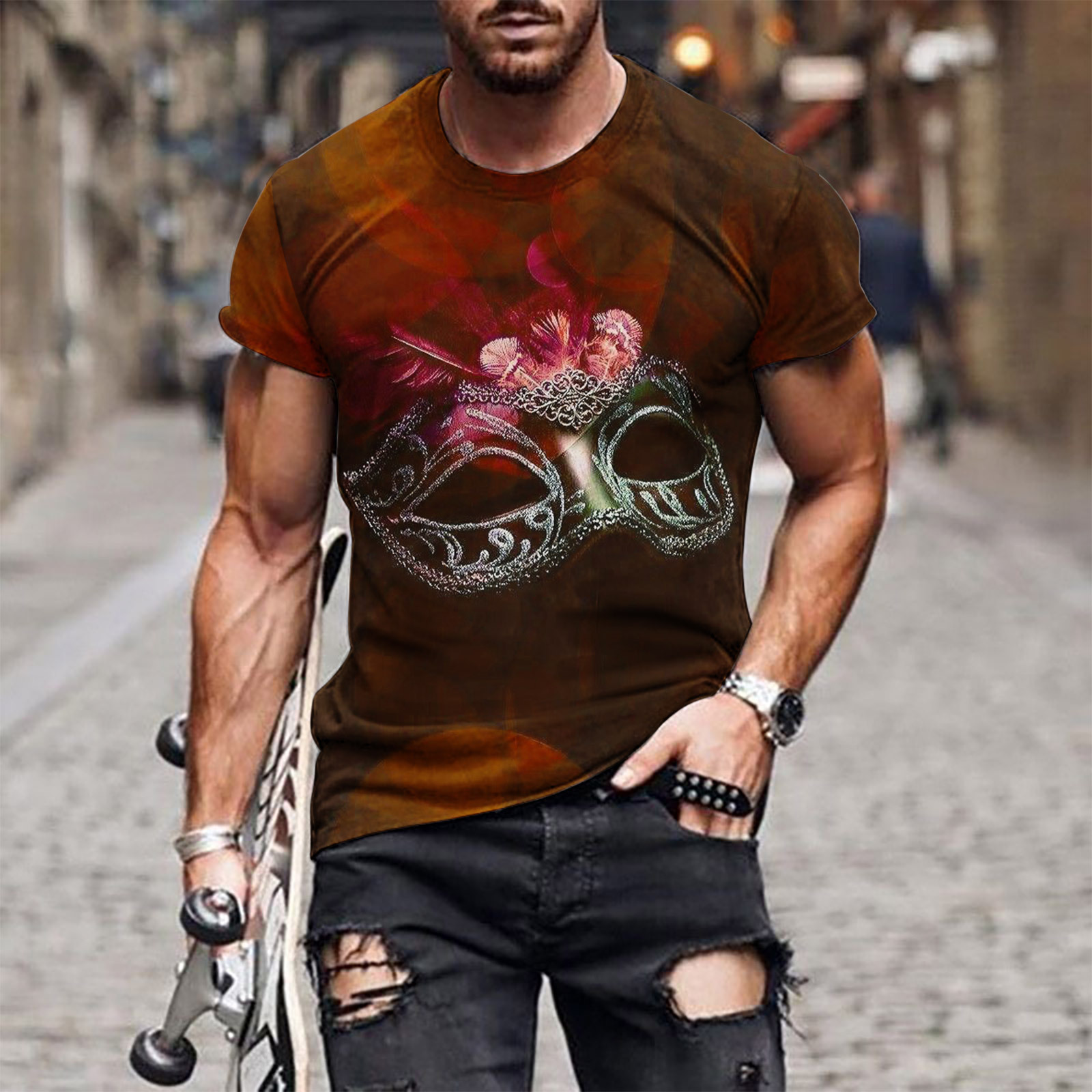 欧米のクロスボーダーの夏のゆるいカジュアルな3dデジタルプリントのマスクのカーニバルの男性の半袖のtシャツの源のメーカー