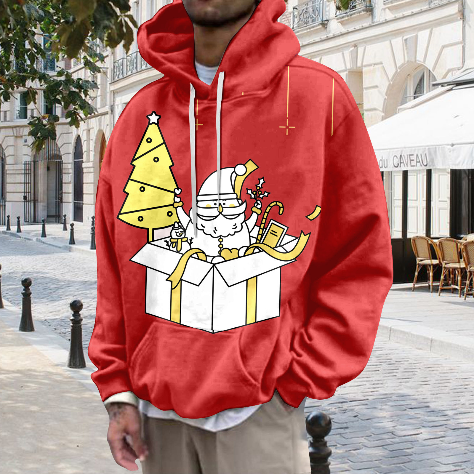 2024クロスボーダー欧米春秋新作クリスマス3dデジタルプリント落書きゆったりメンズカジュアルフード