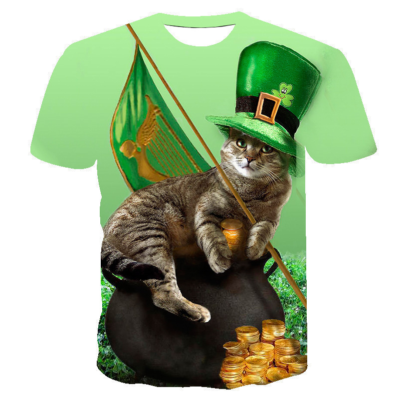 クロスボーダー3DT tシャツ男女中性アイルランド国慶節3d tシャツカップル聖パトリック祭プリント半袖男