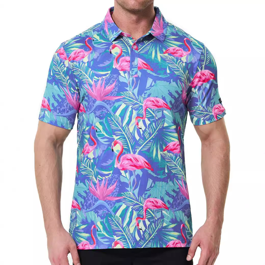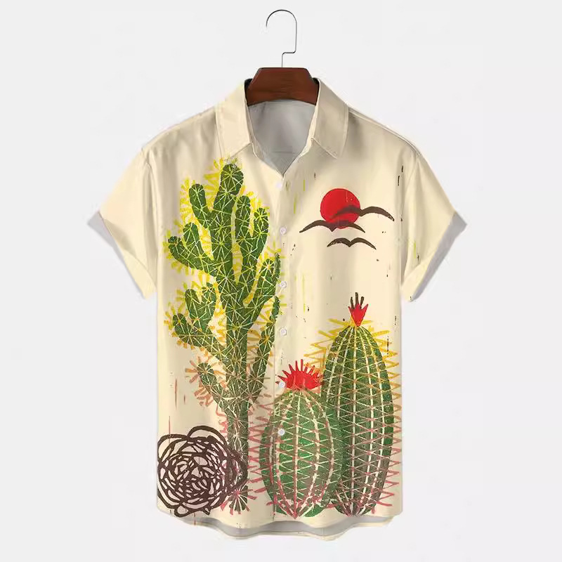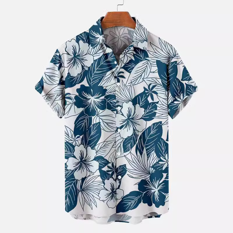 2024クロスボーダー外国貿易新型ファッショントレンドメンズシャツデジタルプリントカジュアル通気性折り襟半袖シャツ
