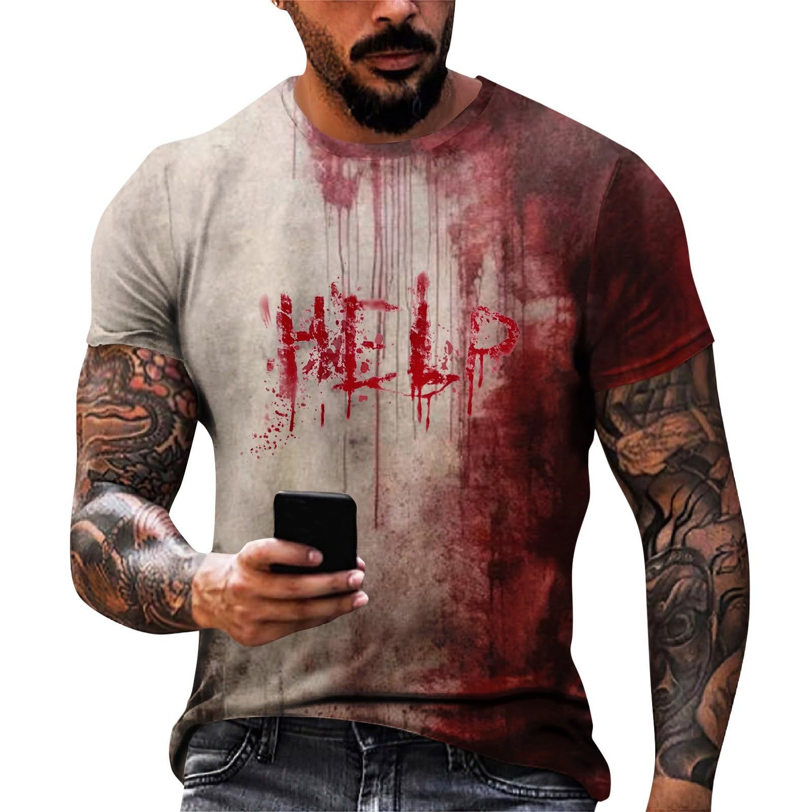 ヨーロッパ版番号2版男性ハロウィーン上着血なまぐさい半袖綿生地のように男性用ホラーtシャツ