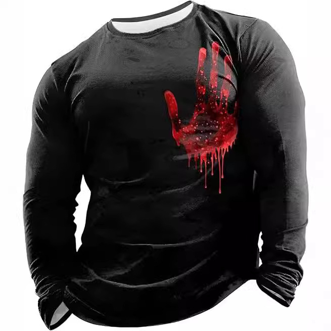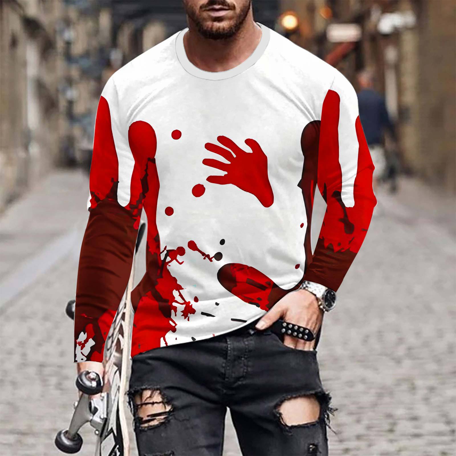 国境を越えた対外貿易欧米ハロウィーン血衣男性3dデジタルプリントカジュアル丸襟春秋綿長袖tシャツ