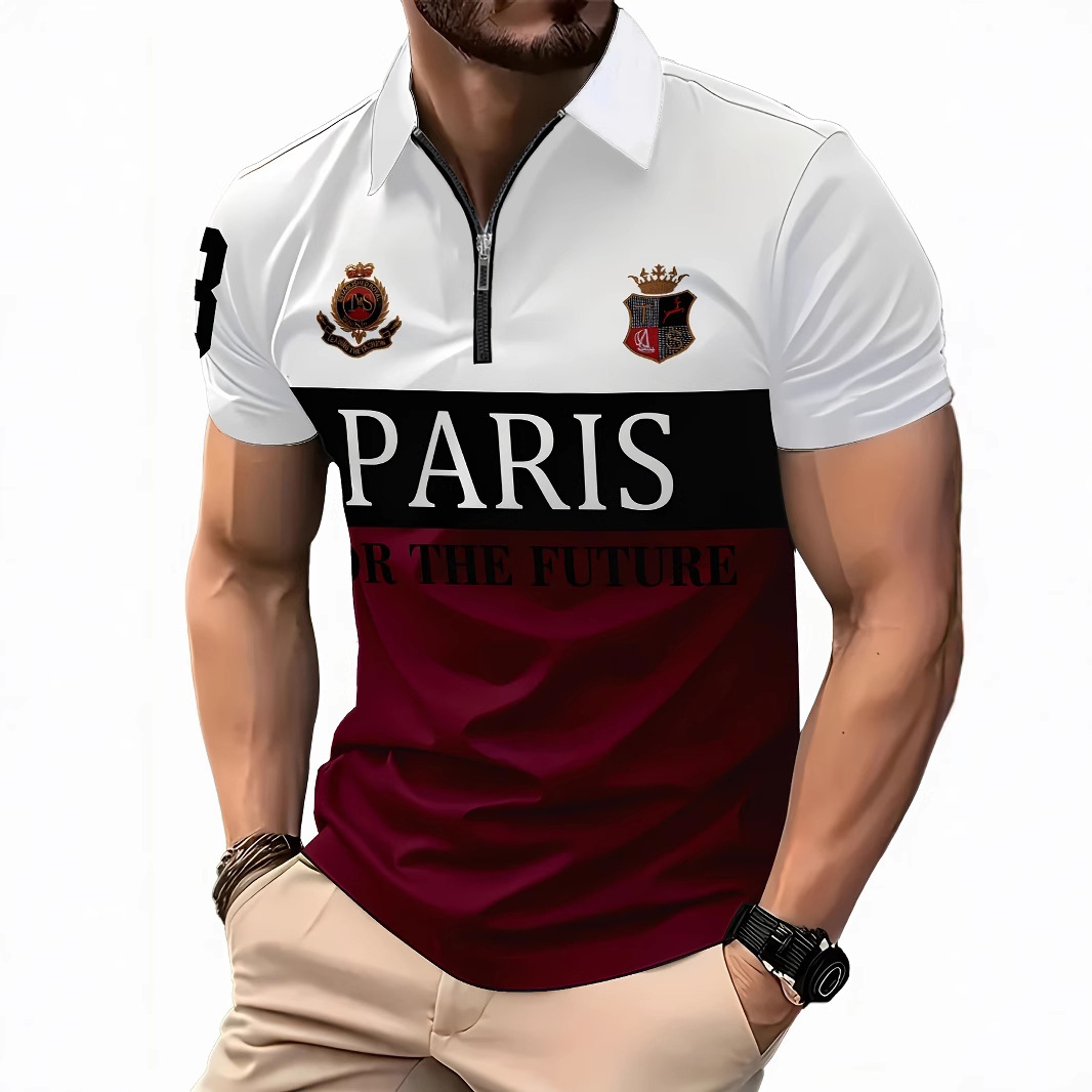 新しいクロスボーダーヨーロッパとアメリカのファッションラペルカラーブロックメンズTシャツカジュアル多用途軽量ファッションジッパーポロシャツ