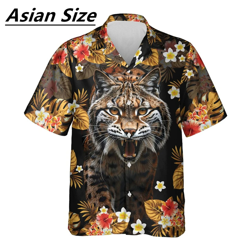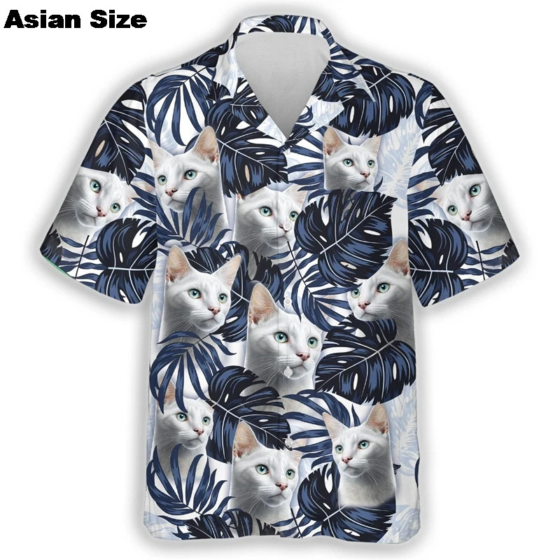 ハワイアンメンズシャツ 2025 かわいい漫画猫 3D プリントトップスカジュアル半袖ボタンダウンラペルシャツ