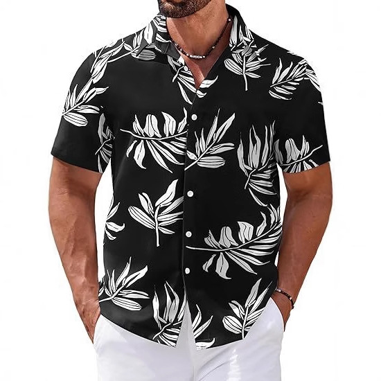 国境を越えた貿易 AliExpress 新しいハワイアンカジュアルラペル半袖シャツ花柄デジタルプリントメンズカーディガン