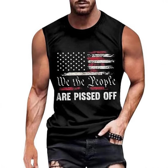 クロスボーダーサマーフィットネストレーニングカジュアルアメリカンルーズノースリーブベスト独立記念日メンズノースリーブワイドショルダートップ