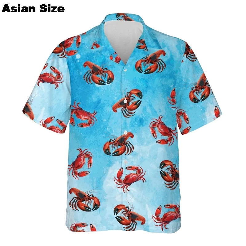 漫画ロブスターカジュアルシャツ動物アンカープリントビーチシャツハワイアン複合メンズグラフィックラペルシャツ
