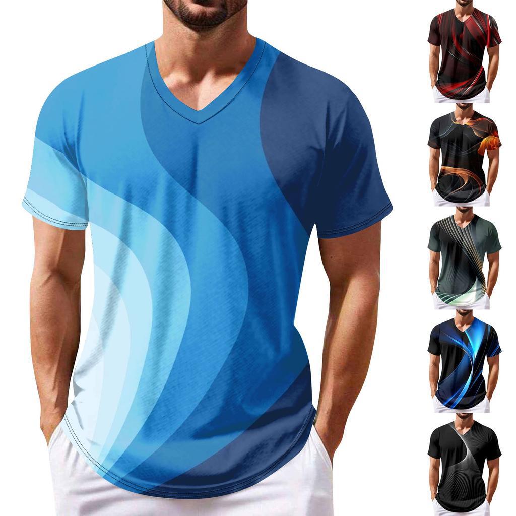 クロスボーダーアマゾン 3D プリントメンズ半袖 Tシャツ夏のファッションストリート V ネックカジュアルルーズトップ紳士服